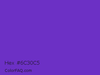 Hex #6c30c5 Color is a normal violet color and the nearest color is Purple Heart Crayola #652dc1. Hex code #6c30c5 and RGB value is rgb(108,48,197). In RGB color space, this color is composed of 42% red, 19% green, 77% blue, In CMYK color space, this color is composed of 45% cyan, 76% magenta, 0% yellow , 23% black , In HSL color space, this color has a hue angle of 264° , 61% saturation and 48% lightness.
