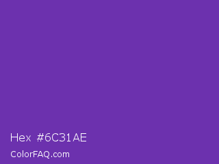Hex #6c31ae Color is a normal violet color and the nearest color is Grape #6f2da8. Hex code #6c31ae and RGB value is rgb(108,49,174). In RGB color space, this color is composed of 42% red, 19% green, 68% blue, In CMYK color space, this color is composed of 38% cyan, 72% magenta, 0% yellow , 32% black , In HSL color space, this color has a hue angle of 268° , 56% saturation and 44% lightness.