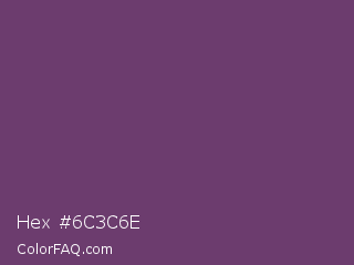 Hex #6c3c6e Color is a normal magenta color and the nearest color is Imperial #602f6b. Hex code #6c3c6e and RGB value is rgb(108,60,110). In RGB color space, this color is composed of 42% red, 24% green, 43% blue, In CMYK color space, this color is composed of 2% cyan, 45% magenta, 0% yellow , 57% black , In HSL color space, this color has a hue angle of 298° , 29% saturation and 33% lightness.