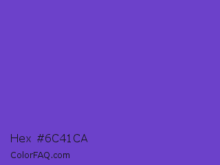 Hex #6c41ca Color is a normal indigo color and the nearest color is Purple Heart Crayola #652dc1. Hex code #6c41ca and RGB value is rgb(108,65,202). In RGB color space, this color is composed of 42% red, 25% green, 79% blue, In CMYK color space, this color is composed of 47% cyan, 68% magenta, 0% yellow , 21% black , In HSL color space, this color has a hue angle of 259° , 56% saturation and 52% lightness.