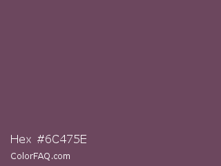 Hex #6c475e Color is a normal magenta color and the nearest color is Zambezi #685558. Hex code #6c475e and RGB value is rgb(108,71,94). In RGB color space, this color is composed of 42% red, 28% green, 37% blue, In CMYK color space, this color is composed of 0% cyan, 34% magenta, 13% yellow , 58% black , In HSL color space, this color has a hue angle of 323° , 21% saturation and 35% lightness.