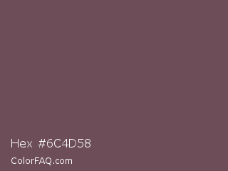 Hex #6c4d58 Color is a normal rose color and the nearest color is Zambezi #685558. Hex code #6c4d58 and RGB value is rgb(108,77,88). In RGB color space, this color is composed of 42% red, 30% green, 35% blue, In CMYK color space, this color is composed of 0% cyan, 29% magenta, 19% yellow , 58% black , In HSL color space, this color has a hue angle of 339° , 17% saturation and 36% lightness.