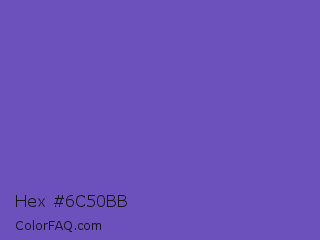 Hex #6c50bb Color is a normal indigo color and the nearest color is Blue Violet #6456b7. Hex code #6c50bb and RGB value is rgb(108,80,187). In RGB color space, this color is composed of 42% red, 31% green, 73% blue, In CMYK color space, this color is composed of 42% cyan, 57% magenta, 0% yellow , 27% black , In HSL color space, this color has a hue angle of 256° , 44% saturation and 52% lightness.