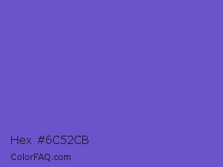 Hex #6c52cb Color is a normal indigo color and the nearest color is Slate Blue #6a5acd. Hex code #6c52cb and RGB value is rgb(108,82,203). In RGB color space, this color is composed of 42% red, 32% green, 80% blue, In CMYK color space, this color is composed of 47% cyan, 60% magenta, 0% yellow , 20% black , In HSL color space, this color has a hue angle of 253° , 54% saturation and 56% lightness.