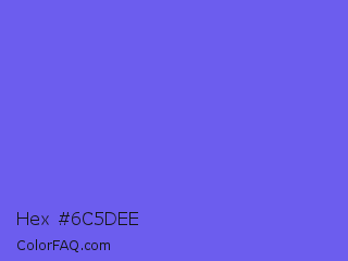 Hex #6c5dee Color is a light indigo color and the nearest color is Medium Slate Blue #7b68ee. Hex code #6c5dee and RGB value is rgb(108,93,238). In RGB color space, this color is composed of 42% red, 36% green, 93% blue, In CMYK color space, this color is composed of 55% cyan, 61% magenta, 0% yellow , 7% black , In HSL color space, this color has a hue angle of 246° , 81% saturation and 65% lightness.