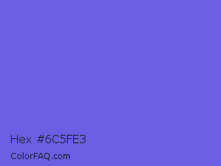 Hex #6c5fe3 Color is a light indigo color and the nearest color is Majorelle Blue #6050dc. Hex code #6c5fe3 and RGB value is rgb(108,95,227). In RGB color space, this color is composed of 42% red, 37% green, 89% blue, In CMYK color space, this color is composed of 52% cyan, 58% magenta, 0% yellow , 11% black , In HSL color space, this color has a hue angle of 246° , 70% saturation and 63% lightness.