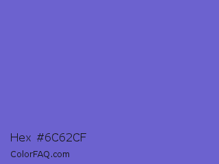 Hex #6c62cf Color is a normal indigo color and the nearest color is Slate Blue #6a5acd. Hex code #6c62cf and RGB value is rgb(108,98,207). In RGB color space, this color is composed of 42% red, 38% green, 81% blue, In CMYK color space, this color is composed of 48% cyan, 53% magenta, 0% yellow , 19% black , In HSL color space, this color has a hue angle of 246° , 53% saturation and 60% lightness.