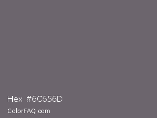 Hex #6c656d Color is a normal magenta color and the nearest color is Dim Gray #696969. Hex code #6c656d and RGB value is rgb(108,101,109). In RGB color space, this color is composed of 42% red, 40% green, 43% blue, In CMYK color space, this color is composed of 1% cyan, 7% magenta, 0% yellow , 57% black , In HSL color space, this color has a hue angle of 293° , 4% saturation and 41% lightness.