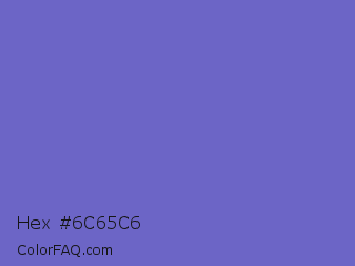 Hex #6c65c6 Color is a normal indigo color and the nearest color is Blue Marguerite #7666c6. Hex code #6c65c6 and RGB value is rgb(108,101,198). In RGB color space, this color is composed of 42% red, 40% green, 78% blue, In CMYK color space, this color is composed of 45% cyan, 49% magenta, 0% yellow , 22% black , In HSL color space, this color has a hue angle of 244° , 46% saturation and 59% lightness.