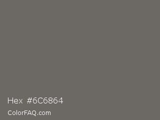 Hex #6c6864 Color is a normal orange color and the nearest color is Flint #6f6a61. Hex code #6c6864 and RGB value is rgb(108,104,100). In RGB color space, this color is composed of 42% red, 41% green, 39% blue, In CMYK color space, this color is composed of 0% cyan, 4% magenta, 7% yellow , 58% black , In HSL color space, this color has a hue angle of 30° , 4% saturation and 41% lightness.