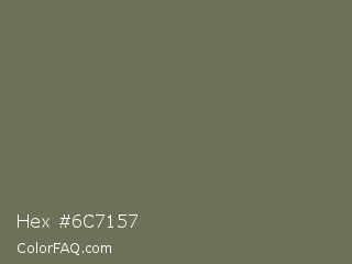 Hex #6c7157 Color is a normal lime color and the nearest color is Kokoda #6e6d57. Hex code #6c7157 and RGB value is rgb(108,113,87). In RGB color space, this color is composed of 42% red, 44% green, 34% blue, In CMYK color space, this color is composed of 4% cyan, 0% magenta, 23% yellow , 56% black , In HSL color space, this color has a hue angle of 72° , 13% saturation and 39% lightness.