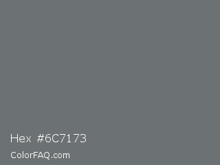 Hex #6c7173 Color is a normal blue color and the nearest color is Nickel #727472. Hex code #6c7173 and RGB value is rgb(108,113,115). In RGB color space, this color is composed of 42% red, 44% green, 45% blue, In CMYK color space, this color is composed of 6% cyan, 2% magenta, 0% yellow , 55% black , In HSL color space, this color has a hue angle of 197° , 3% saturation and 44% lightness.