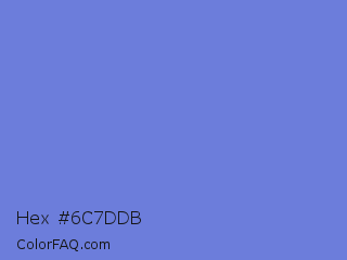 Hex #6c7ddb Color is a light blue color and the nearest color is Moody Blue #7f76d3. Hex code #6c7ddb and RGB value is rgb(108,125,219). In RGB color space, this color is composed of 42% red, 49% green, 86% blue, In CMYK color space, this color is composed of 51% cyan, 43% magenta, 0% yellow , 14% black , In HSL color space, this color has a hue angle of 231° , 61% saturation and 64% lightness.