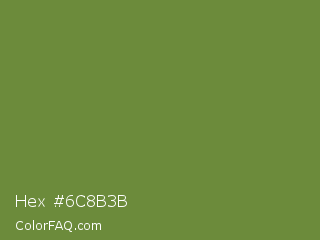 Hex #6c8b3b Color is a normal green color and the nearest color is Palm Leaf #6f9940. Hex code #6c8b3b and RGB value is rgb(108,139,59). In RGB color space, this color is composed of 42% red, 55% green, 23% blue, In CMYK color space, this color is composed of 22% cyan, 0% magenta, 58% yellow , 45% black , In HSL color space, this color has a hue angle of 83° , 40% saturation and 39% lightness.
