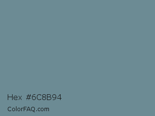 Hex #6c8b94 Color is a normal blue color and the nearest color is Juniper #6d9292. Hex code #6c8b94 and RGB value is rgb(108,139,148). In RGB color space, this color is composed of 42% red, 55% green, 58% blue, In CMYK color space, this color is composed of 27% cyan, 6% magenta, 0% yellow , 42% black , In HSL color space, this color has a hue angle of 194° , 16% saturation and 50% lightness.