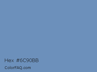 Hex #6c90bb Color is a normal blue color and the nearest color is Ship Cove #788bba. Hex code #6c90bb and RGB value is rgb(108,144,187). In RGB color space, this color is composed of 42% red, 56% green, 73% blue, In CMYK color space, this color is composed of 42% cyan, 23% magenta, 0% yellow , 27% black , In HSL color space, this color has a hue angle of 213° , 37% saturation and 58% lightness.