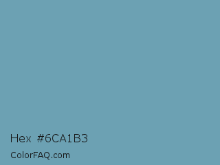 Hex #6ca1b3 Color is a normal blue color and the nearest color is Air Superiority Blue #72a0c1. Hex code #6ca1b3 and RGB value is rgb(108,161,179). In RGB color space, this color is composed of 42% red, 63% green, 70% blue, In CMYK color space, this color is composed of 40% cyan, 10% magenta, 0% yellow , 30% black , In HSL color space, this color has a hue angle of 195° , 32% saturation and 56% lightness.