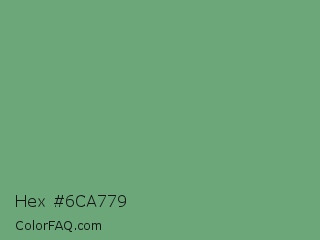 Hex #6ca779 Color is a normal green color and the nearest color is Shiny Shamrock #5fa778. Hex code #6ca779 and RGB value is rgb(108,167,121). In RGB color space, this color is composed of 42% red, 65% green, 47% blue, In CMYK color space, this color is composed of 35% cyan, 0% magenta, 28% yellow , 35% black , In HSL color space, this color has a hue angle of 133° , 25% saturation and 54% lightness.