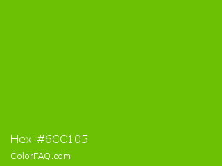 Hex #6cc105 Color is a normal green color and the nearest color is Lima #76bd17. Hex code #6cc105 and RGB value is rgb(108,193,5). In RGB color space, this color is composed of 42% red, 76% green, 2% blue, In CMYK color space, this color is composed of 44% cyan, 0% magenta, 97% yellow , 24% black , In HSL color space, this color has a hue angle of 87° , 95% saturation and 39% lightness.