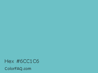 Hex #6cc1c6 Color is a normal cyan color and the nearest color is Downy #6fd0c5. Hex code #6cc1c6 and RGB value is rgb(108,193,198). In RGB color space, this color is composed of 42% red, 76% green, 78% blue, In CMYK color space, this color is composed of 45% cyan, 3% magenta, 0% yellow , 22% black , In HSL color space, this color has a hue angle of 183° , 44% saturation and 60% lightness.