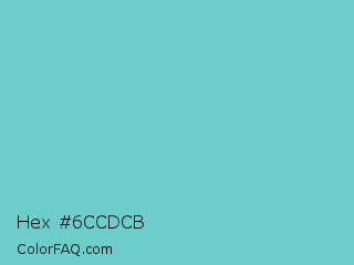 Hex #6ccdcb Color is a light cyan color and the nearest color is Downy #6fd0c5. Hex code #6ccdcb and RGB value is rgb(108,205,203). In RGB color space, this color is composed of 42% red, 80% green, 80% blue, In CMYK color space, this color is composed of 47% cyan, 0% magenta, 1% yellow , 20% black , In HSL color space, this color has a hue angle of 179° , 49% saturation and 61% lightness.