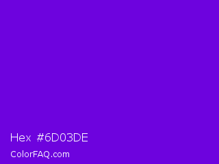 Hex #6d03de Color is a normal violet color and the nearest color is French Violet #8806ce. Hex code #6d03de and RGB value is rgb(109,3,222). In RGB color space, this color is composed of 43% red, 1% green, 87% blue, In CMYK color space, this color is composed of 51% cyan, 99% magenta, 0% yellow , 13% black , In HSL color space, this color has a hue angle of 269° , 97% saturation and 44% lightness.