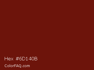 Hex #6d140b Color is a dark red color and the nearest color is Dark Tan #661010. Hex code #6d140b and RGB value is rgb(109,20,11). In RGB color space, this color is composed of 43% red, 8% green, 4% blue, In CMYK color space, this color is composed of 0% cyan, 82% magenta, 90% yellow , 57% black , In HSL color space, this color has a hue angle of 6° , 82% saturation and 24% lightness.