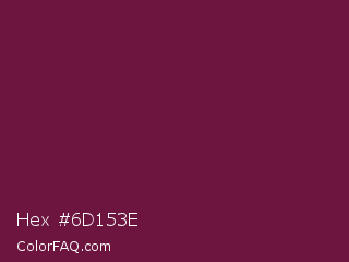 Hex #6d153e Color is a dark rose color and the nearest color is Pansy Purple #78184a. Hex code #6d153e and RGB value is rgb(109,21,62). In RGB color space, this color is composed of 43% red, 8% green, 24% blue, In CMYK color space, this color is composed of 0% cyan, 81% magenta, 43% yellow , 57% black , In HSL color space, this color has a hue angle of 332° , 68% saturation and 25% lightness.