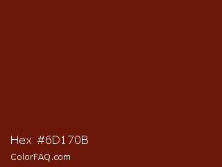 Hex #6d170b Color is a dark red color and the nearest color is Moccaccino #6e1d14. Hex code #6d170b and RGB value is rgb(109,23,11). In RGB color space, this color is composed of 43% red, 9% green, 4% blue, In CMYK color space, this color is composed of 0% cyan, 79% magenta, 90% yellow , 57% black , In HSL color space, this color has a hue angle of 7° , 82% saturation and 24% lightness.