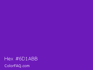 Hex #6d1abb Color is a normal purple color and the nearest color is Purple Heart Crayola #652dc1. Hex code #6d1abb and RGB value is rgb(109,26,187). In RGB color space, this color is composed of 43% red, 10% green, 73% blue, In CMYK color space, this color is composed of 42% cyan, 86% magenta, 0% yellow , 27% black , In HSL color space, this color has a hue angle of 271° , 76% saturation and 42% lightness.