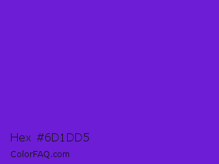 Hex #6d1dd5 Color is a normal violet color and the nearest color is Purple Heart Crayola #652dc1. Hex code #6d1dd5 and RGB value is rgb(109,29,213). In RGB color space, this color is composed of 43% red, 11% green, 84% blue, In CMYK color space, this color is composed of 49% cyan, 86% magenta, 0% yellow , 16% black , In HSL color space, this color has a hue angle of 266° , 76% saturation and 47% lightness.