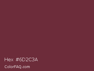Hex #6d2c3a Color is a dark red color and the nearest color is Wine #722f37. Hex code #6d2c3a and RGB value is rgb(109,44,58). In RGB color space, this color is composed of 43% red, 17% green, 23% blue, In CMYK color space, this color is composed of 0% cyan, 60% magenta, 47% yellow , 57% black , In HSL color space, this color has a hue angle of 347° , 42% saturation and 30% lightness.