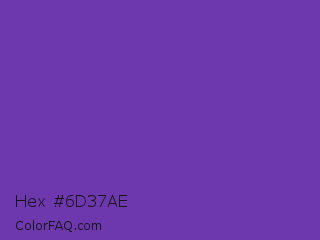 Hex #6d37ae Color is a normal violet color and the nearest color is Grape #6f2da8. Hex code #6d37ae and RGB value is rgb(109,55,174). In RGB color space, this color is composed of 43% red, 22% green, 68% blue, In CMYK color space, this color is composed of 37% cyan, 68% magenta, 0% yellow , 32% black , In HSL color space, this color has a hue angle of 267° , 52% saturation and 45% lightness.
