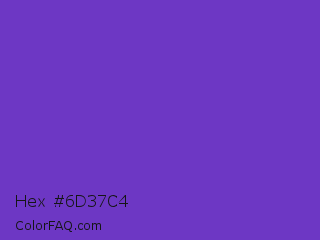 Hex #6d37c4 Color is a normal violet color and the nearest color is Purple Heart Crayola #652dc1. Hex code #6d37c4 and RGB value is rgb(109,55,196). In RGB color space, this color is composed of 43% red, 22% green, 77% blue, In CMYK color space, this color is composed of 44% cyan, 72% magenta, 0% yellow , 23% black , In HSL color space, this color has a hue angle of 263° , 56% saturation and 49% lightness.