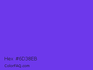 Hex #6d38eb Color is a normal indigo color and the nearest color is Majorelle Blue #6050dc. Hex code #6d38eb and RGB value is rgb(109,56,235). In RGB color space, this color is composed of 43% red, 22% green, 92% blue, In CMYK color space, this color is composed of 54% cyan, 76% magenta, 0% yellow , 8% black , In HSL color space, this color has a hue angle of 258° , 82% saturation and 57% lightness.