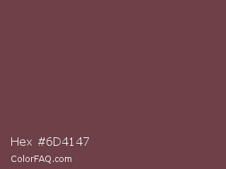 Hex #6d4147 Color is a normal red color and the nearest color is Roast Coffee #704241. Hex code #6d4147 and RGB value is rgb(109,65,71). In RGB color space, this color is composed of 43% red, 25% green, 28% blue, In CMYK color space, this color is composed of 0% cyan, 40% magenta, 35% yellow , 57% black , In HSL color space, this color has a hue angle of 352° , 25% saturation and 34% lightness.