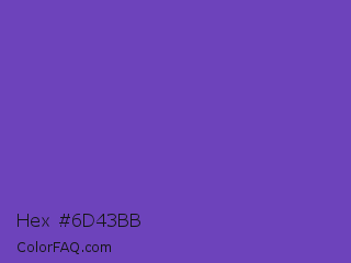 Hex #6d43bb Color is a normal violet color and the nearest color is Studio #714ab2. Hex code #6d43bb and RGB value is rgb(109,67,187). In RGB color space, this color is composed of 43% red, 26% green, 73% blue, In CMYK color space, this color is composed of 42% cyan, 64% magenta, 0% yellow , 27% black , In HSL color space, this color has a hue angle of 261° , 47% saturation and 50% lightness.