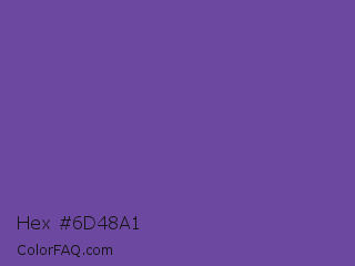 Hex #6d48a1 Color is a normal violet color and the nearest color is Royal Purple #6b3fa0. Hex code #6d48a1 and RGB value is rgb(109,72,161). In RGB color space, this color is composed of 43% red, 28% green, 63% blue, In CMYK color space, this color is composed of 32% cyan, 55% magenta, 0% yellow , 37% black , In HSL color space, this color has a hue angle of 265° , 38% saturation and 46% lightness.
