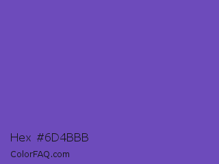 Hex #6d4bbb Color is a normal indigo color and the nearest color is Studio #714ab2. Hex code #6d4bbb and RGB value is rgb(109,75,187). In RGB color space, this color is composed of 43% red, 29% green, 73% blue, In CMYK color space, this color is composed of 42% cyan, 60% magenta, 0% yellow , 27% black , In HSL color space, this color has a hue angle of 258° , 45% saturation and 51% lightness.