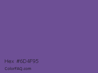 Hex #6d4f95 Color is a normal violet color and the nearest color is Dark Lavender #734f96. Hex code #6d4f95 and RGB value is rgb(109,79,149). In RGB color space, this color is composed of 43% red, 31% green, 58% blue, In CMYK color space, this color is composed of 27% cyan, 47% magenta, 0% yellow , 42% black , In HSL color space, this color has a hue angle of 266° , 31% saturation and 45% lightness.