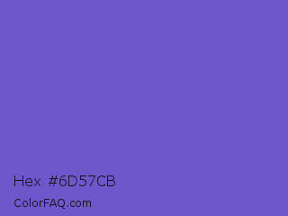 Hex #6d57cb Color is a normal indigo color and the nearest color is Slate Blue #6a5acd. Hex code #6d57cb and RGB value is rgb(109,87,203). In RGB color space, this color is composed of 43% red, 34% green, 80% blue, In CMYK color space, this color is composed of 46% cyan, 57% magenta, 0% yellow , 20% black , In HSL color space, this color has a hue angle of 251° , 53% saturation and 57% lightness.