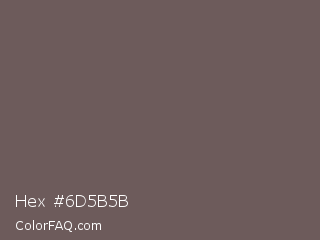 Hex #6d5b5b Color is a normal red color and the nearest color is Dorado #6b5755. Hex code #6d5b5b and RGB value is rgb(109,91,91). In RGB color space, this color is composed of 43% red, 36% green, 36% blue, In CMYK color space, this color is composed of 0% cyan, 17% magenta, 17% yellow , 57% black , In HSL color space, this color has a hue angle of 0° , 9% saturation and 39% lightness.