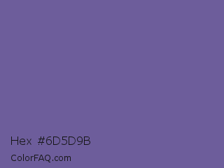 Hex #6d5d9b Color is a normal indigo color and the nearest color is Dark Blue Gray #666699. Hex code #6d5d9b and RGB value is rgb(109,93,155). In RGB color space, this color is composed of 43% red, 36% green, 61% blue, In CMYK color space, this color is composed of 30% cyan, 40% magenta, 0% yellow , 39% black , In HSL color space, this color has a hue angle of 255° , 25% saturation and 49% lightness.
