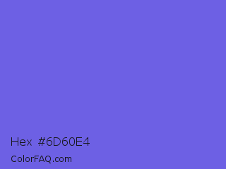 Hex #6d60e4 Color is a light indigo color and the nearest color is Medium Slate Blue #7b68ee. Hex code #6d60e4 and RGB value is rgb(109,96,228). In RGB color space, this color is composed of 43% red, 38% green, 89% blue, In CMYK color space, this color is composed of 52% cyan, 58% magenta, 0% yellow , 11% black , In HSL color space, this color has a hue angle of 246° , 71% saturation and 64% lightness.