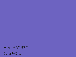 Hex #6d63c1 Color is a normal indigo color and the nearest color is Blue Marguerite #7666c6. Hex code #6d63c1 and RGB value is rgb(109,99,193). In RGB color space, this color is composed of 43% red, 39% green, 76% blue, In CMYK color space, this color is composed of 44% cyan, 49% magenta, 0% yellow , 24% black , In HSL color space, this color has a hue angle of 246° , 43% saturation and 57% lightness.