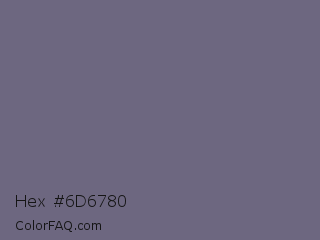 Hex #6d6780 Color is a normal indigo color and the nearest color is Old Lavender #796878. Hex code #6d6780 and RGB value is rgb(109,103,128). In RGB color space, this color is composed of 43% red, 40% green, 50% blue, In CMYK color space, this color is composed of 15% cyan, 20% magenta, 0% yellow , 50% black , In HSL color space, this color has a hue angle of 254° , 11% saturation and 45% lightness.