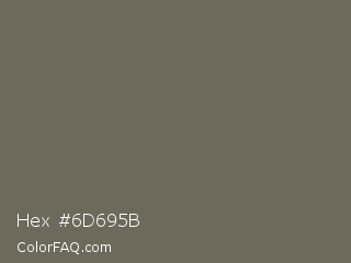 Hex #6d695b Color is a normal yellow color and the nearest color is Kokoda #6e6d57. Hex code #6d695b and RGB value is rgb(109,105,91). In RGB color space, this color is composed of 43% red, 41% green, 36% blue, In CMYK color space, this color is composed of 0% cyan, 4% magenta, 17% yellow , 57% black , In HSL color space, this color has a hue angle of 47° , 9% saturation and 39% lightness.
