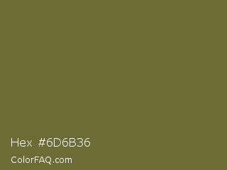 Hex #6d6b36 Color is a normal yellow color and the nearest color is Yellow Metal #716338. Hex code #6d6b36 and RGB value is rgb(109,107,54). In RGB color space, this color is composed of 43% red, 42% green, 21% blue, In CMYK color space, this color is composed of 0% cyan, 2% magenta, 50% yellow , 57% black , In HSL color space, this color has a hue angle of 58° , 34% saturation and 32% lightness.