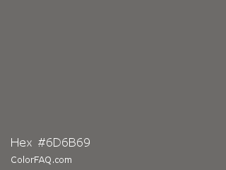 Hex #6d6b69 Color is a normal orange color and the nearest color is Dove Gray #6d6c6c. Hex code #6d6b69 and RGB value is rgb(109,107,105). In RGB color space, this color is composed of 43% red, 42% green, 41% blue, In CMYK color space, this color is composed of 0% cyan, 2% magenta, 4% yellow , 57% black , In HSL color space, this color has a hue angle of 30° , 2% saturation and 42% lightness.