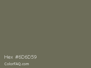Hex #6d6d59 Color is a normal yellow color and the nearest color is Kokoda #6e6d57. Hex code #6d6d59 and RGB value is rgb(109,109,89). In RGB color space, this color is composed of 43% red, 43% green, 35% blue, In CMYK color space, this color is composed of 0% cyan, 0% magenta, 18% yellow , 57% black , In HSL color space, this color has a hue angle of 60° , 10% saturation and 39% lightness.